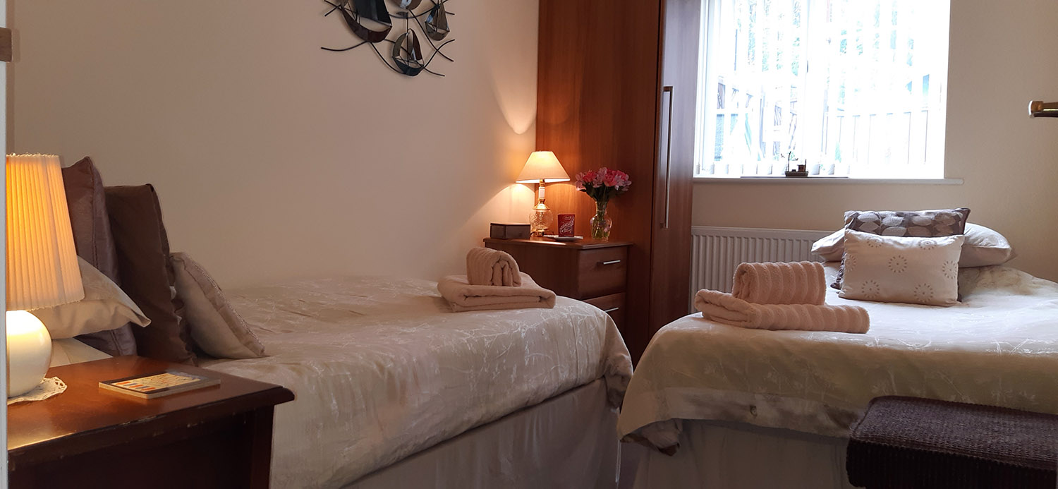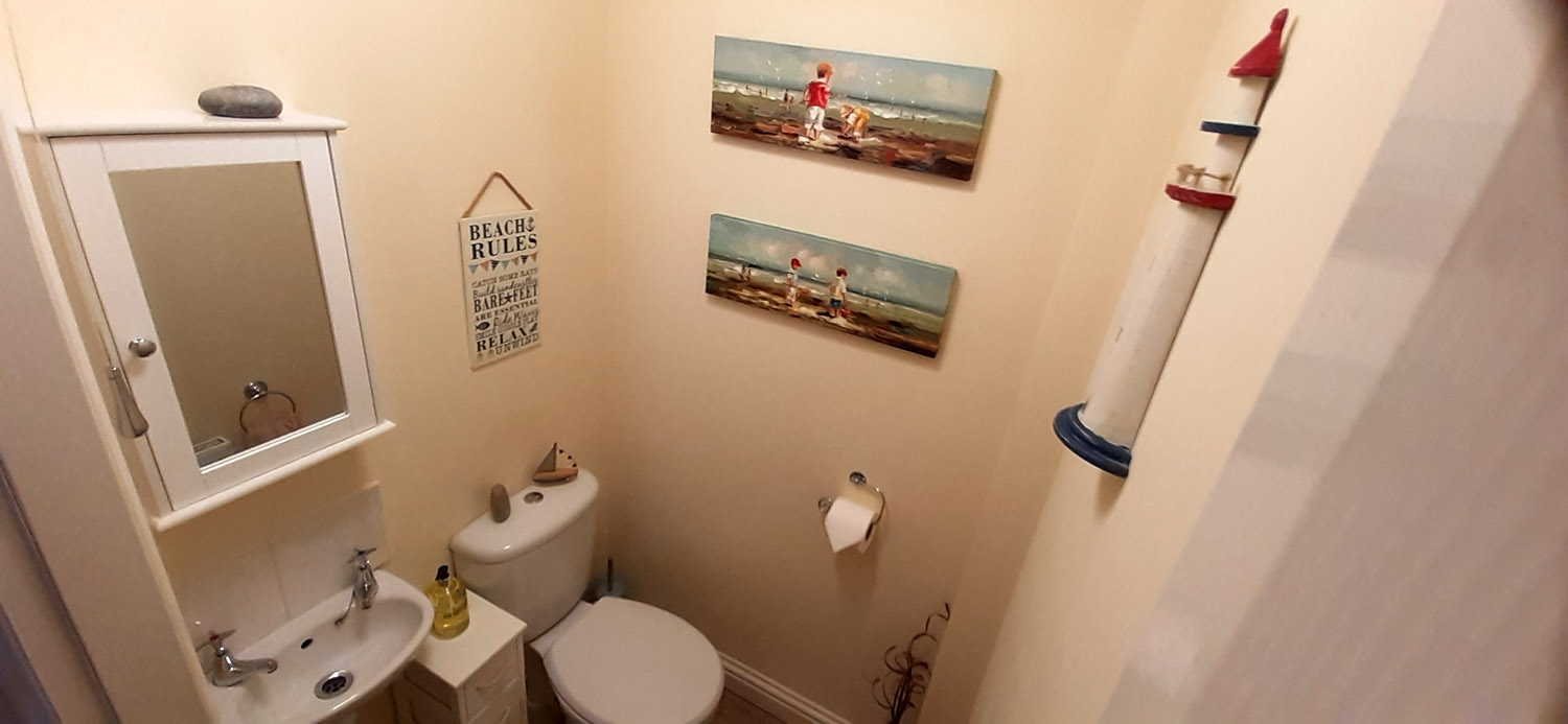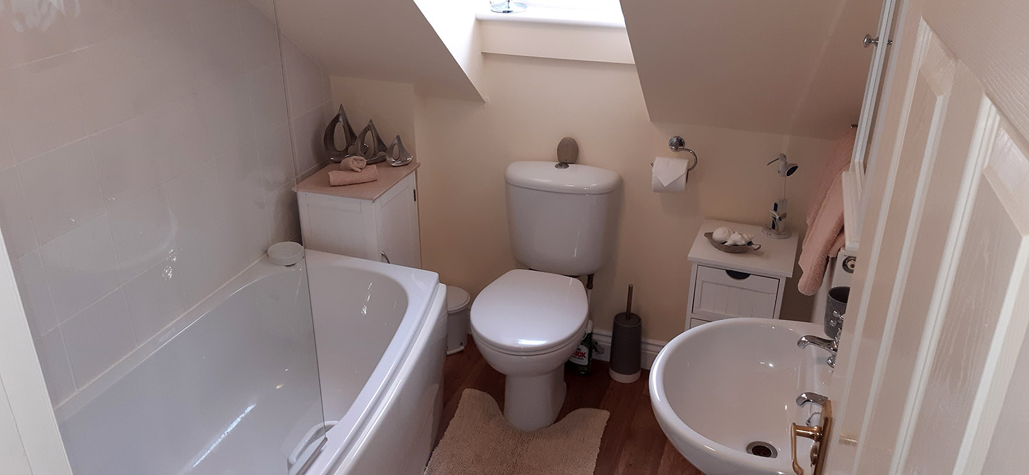 The cottage sleeps 4, with a spacious double bedroom upstairs and a twin bedded room downstairs conveniently located next to the downstairs cloakroom. The main house bathroom is located upstairs with white modern furnishings and an electric shower over the bath.